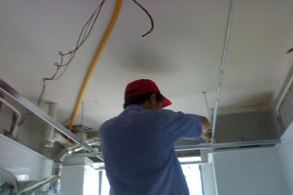 1.精确测量安装面积,做好安装准备;2.安装收边线;3.打膨胀螺丝钉,悬挂吊杆;4.安装吊钩,吊顶装轻钢龙骨;5.把安装好挂片的三角龙骨紧贴轻钢龙骨垂直方向在轻钢龙骨下方6.将扣板压入三角龙骨缝中,确定互相垂直;7.安装电器8.校验调整![]() |